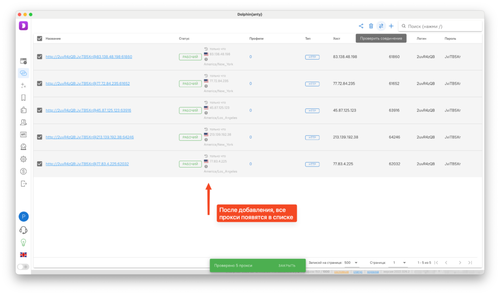 Вот и все, список ваших рабочих прокси серверов будет отображен в интерфейсе: