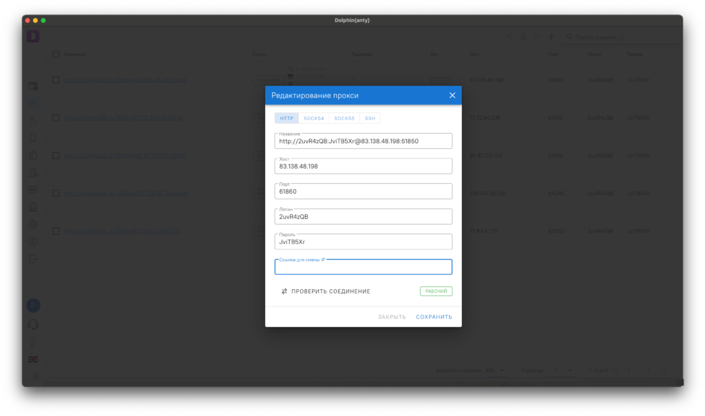 Так, вы можете внести любое количество серверов, используя их для своей работы. А если вы желаете отредактировать данные прокси, достаточно просто нажать на сам прокси, и в открытом окошке можете сменить данные: