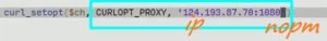 2. Next, you need to enter the CURLOPT_PROXY parameters, but nearby you should provide the IP and port values for the proxy server you are using.